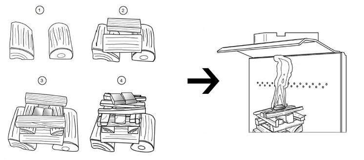 Gradually lay the logs toward the center as you build the cabin higher. It will have the appearance of a pyramid, and coals will form quickly.